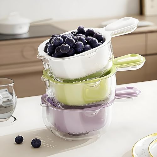 Tendencyh Draining Basket,Kitchen Dual-Layer Draining Basket with Handle,2 in 1 Fruit Cleaning Bowl with Strainer Container for Washing Various Fruits Vegetables (3Pcs)