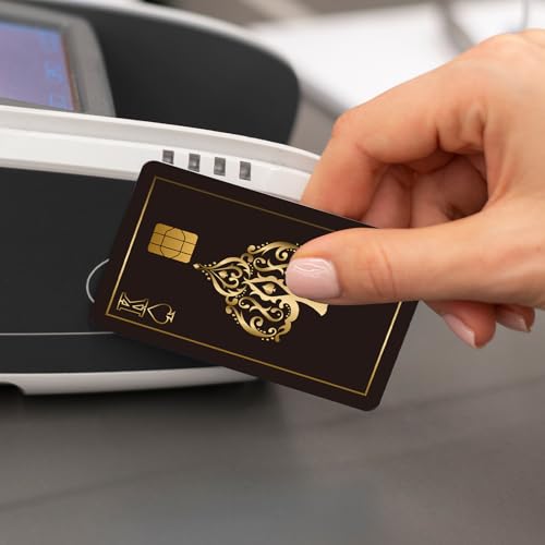 - High-Quality Materials: Made of high-quality materials, wear-resistant and anti-fingerprint, and will not leave marks even after repeated wiping. Under frequent use, the color remains bright and new, your cards maintain a high appearance, Unique Design: Black credit card stickers to help you stand out from the crowd. We used poker as inspiration, making you the focus of the crowd, Use Easily: Our stickers easy-to-peel, no tools are required, and novices can use them easily. There will be no glue marks left when removing, you can change the style at any time, Wide Application: Our products can be used for various credit cards, debit cards, bus cards, access cards and other items, turning ordinary items into personalized credit cards, gaining the envy of others, Perfect Gift: These card stickers can be given as gifts to others or yourself. Give them to your family, husband/wife, friends, colleagues, it will definitely become a precious memory between you