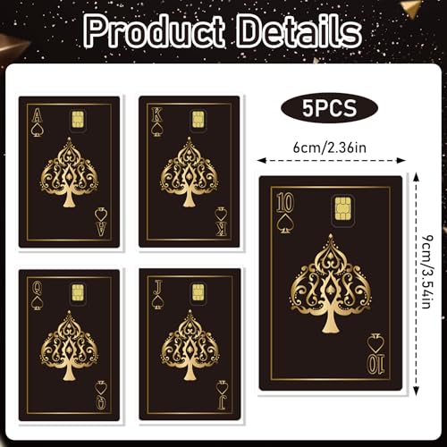 Rngmsi Credit Debit Card Skin - 5 Pcs Casino Poker Debit Card Stickers Waterproof Decal Cover Set for DIY Key Transportation Credit Cards Removable Sticker