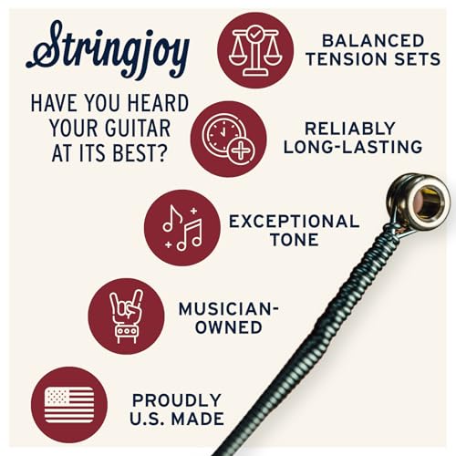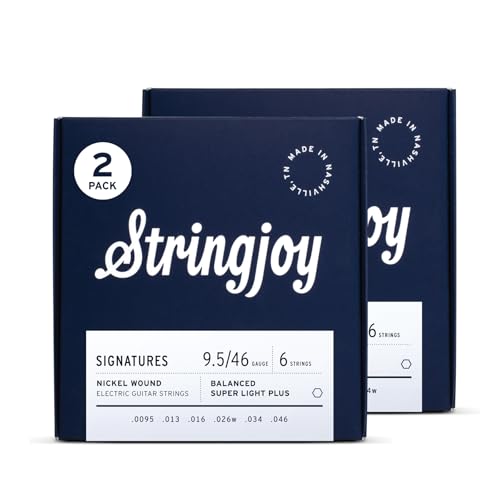 - Premium Tuning Stability: Stringjoy Signatures Nickel Electric Guitar Strings, now available in 2 pack bundles, offer unmatched balance and tuning stability that’ll ensure your guitar resonates perfectly and stays in tune longer. Less tuning. More playing., Effortless Playing, Incredible Tone: Balanced Super Light Plus Gauge strings are the perfect choice for players who want the fullness of 10s and the flexibility of 9s. Not ready to commit to a full leap in gauge? Check these out., Exceptional Durability: Built to last, Stringjoy electric guitar strings are crafted from high-quality materials and wound to exacting specs that ensure they’ll withstand the most rigorous playing. Spend less time changing strings, more time playing., About Us: Scott here—I founded Stringjoy in 2014 because I believe that better strings empower guitarists to play better, play longer, and forge a deeper connection with their instrument; Unlike many brands, we proudly craft every string in-house in Nashville, Tennessee, using state-of-the-art winding equipment; Our passion for perfection means we obsess over every detail, ensuring you get strings that sound fuller, play smoother, and last longer.