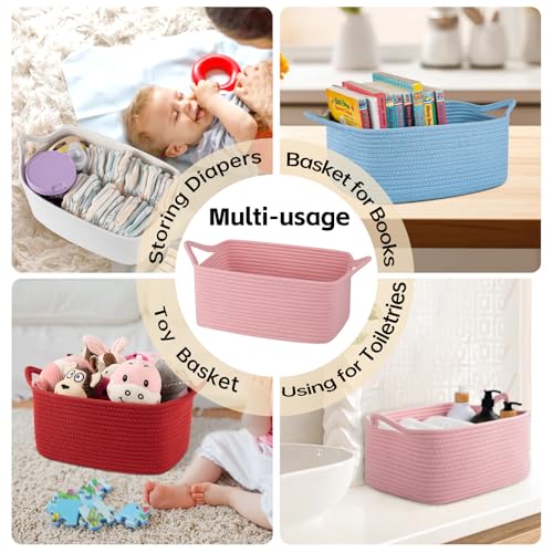 - Safe Material: The basket is 13.5*10*6in and made of 100% pure cotton material, no chemical material, no odor, soft and skin friendly. It is no sharp edges that may scratch the floor, especially suitable for children and pets.We are passionate about providing you and your family with a healthy and clean home atmosphere, Multi functional storage: The woven basket has multiple practical functions and can store daily small items such as books, diapers, keys, fruits, snacks, etc. It can be used as a children's toy basket, dog toy basket, toiletries basket, shelf basket, or desktop organizing basket. It has a wide range of applicability and can be easily integrated into various home spaces, such as living rooms, bedrooms, children's rooms, washbasins, etc, Cute and practical handle: Each baby basket has uniquely cat ear handles, which are cute and practical. The handles are on both sides of the basket for easy grip and movement. The connection between the handle and the small basket is tightly sewn together, so you don't have to worry about the basket breaking when lifting heavy objects, Exquisite Gift Basket :The gift baskets are both stylish home organizers and thoughtful gifts. It comes with ribbons and an packaging bag, making it convenient to carry and saving your time in selecting suitable gifts greatly. The small gift basket empty suitable for various occasions like graduations, baby showers, birthday, Valentine's Day, Easter, Thanksgiving, Christmas and etc. Perfect for fostering intimate connections, Convenient recovery process: The small baskets for gifts is folded when arriving. After receiving the basket, you can easily open it and place towels or clothes to regain its shape. If you have an iron at home, ironing can also help the cute storage basket recover to its best condition faster