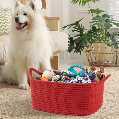 OIAHOMY Woven Basket, Gift Basket Empty with Gift Bags and Ribbons, Rope Baskets for Baby Showers, Storage Baskets with Handles for Nursery, Pet Toy Organizer - Red