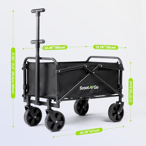 SCOOTNGO Mobility Scooters for Seniors, 4 Wheel Travel Mobility Scooter for Adults with Dual Removable Batteries, Lightweight Foldable Airline Approved, Long Range, with Collapsible Wagon, Black Green