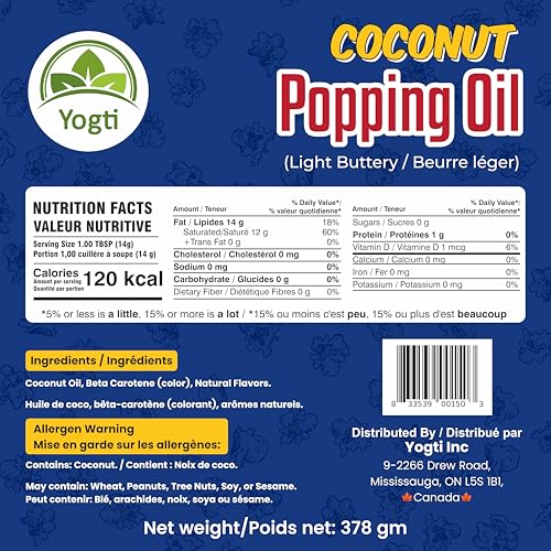 - PREMIUM QUALITY: Yogti popcorn oil delivers rich, buttery flavour for delicious movie-theatre style popcorn at home, GENEROUS SIZE: 454 ml bottle provides ample supply for multiple popping sessions, VERSATILE USE: Perfect for stovetop popping, electric popcorn makers, and commercial popcorn machines, FLAVOUR ENHANCEMENT: Creates perfectly coated kernels with authentic buttery taste in every batch, EASY POUR: Convenient bottle design allows precise measurement and drip-free dispensing