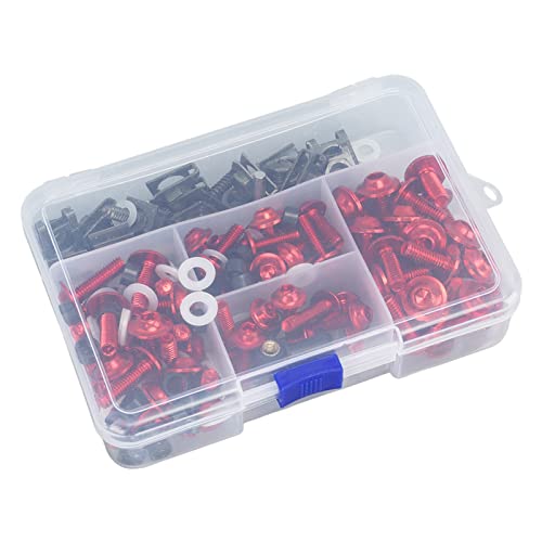 - [VERSATILE FITMENT] - This comprehensive motorcycle fairing Screw/Fastener kit is designed for compatibility with popular models such as 250 and 300, GSXR600 and GSXR750, as well as the CBR600RR, CBR1000RR, and VFR800. It also serves as a replacement kit for models, making it a versatile choice for various motorcycles. Whether you're repairing or customizing, this kit provides a reliable solution., [STYLISH DECORATION] - Transform the look of your motorcycle with these colorful windscreen screws. The sleek, anodized surface not only enhances the aesthetic appeal of your bike but also adds a vibrant and stylish touch. These bolts are for riders looking to make a statement and stand out on the road, combining both form and function., [PREMIUM MATERIALS] - Crafted from premium aluminum, these screws are both sturdy and precise. The color anodized surface provides a metallic luster that resists wear and tear, ensuring long-lasting use. This kit's robust construction is designed to withstand the rigors of riding while providing a secure and practical fastening solution for various motorcycle components., [FULL PACKAGE] - This 177-piece Screw/Fastener kit is fully equipped to meet all your screwing needs. With an ample supply and diverse shapes of screws, you’ll have everything necessary for different mounting applications. From replacing damaged parts to customizing your ride, this kit ensures you have the right tools for a complete installation., [HASSLE- INSTALLATION] - Enjoy easy and accurate installation with standard M5 and M6 motorcycle fairing bolts. Designed for straightforward replacement, these screws offer precise sizing and simple fitting, making it convenient for any rider to install or repair. Maintain your motorcycle's performance and appearance with minimal effort with this all-inclusive kit.