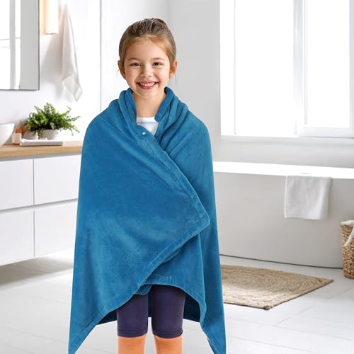 PAVILIA Fleece Hooded Towel for Kids, Soft Plush Toddler Beach Towel, Shower Wrap for Pool Beach, Absorbent Swimming Poncho for Toddler Boys Girls 3-8 Years 50x30 Inch, Sea Blue