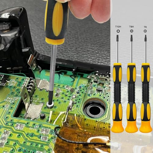 - PACKAGE INCLUDES: 4 x joysticks, 4 x joystick thumb covers, 4 x joystick thumb protectors, 3 x Screwdrivers of T6 T8 T10, 3 x prying tools ,1 x brush, 1 x solder wick braid., PRACTICAL DESIGN: The T6, T8 and T10 screwdrivers with magnetic tips help you tighten screws easily., SOLDER WICK BRAID: Desoldering wicks correct errors on small PCB boards without damaging the board and are suitable for re-soldering and desoldering. The no-clean core braid leaves only a small residue after use, eliminating the need to waste time cleaning., QUALITY MATERIAL: Replacement handle covers and analog joysticks are made of plastic and metal; Joystick thumb protectors are made of high-quality silicone, which is durable, comfortable to touch, impact-resistant, abrasion-resistant, and not easy to break., EASY TO REPAIR: Perfect for repairing or replacing damaged or unusable joysticks. Joystick replacement can handle most issues like stick drift, creeping, stuttering, blind spots, dead zones, no click, mis centering, broken and loose joysticks. If you have any questions or requirements regarding the product, please feel free to contact us.