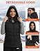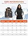 - 15 Heating Zones: Upgraded heating elements deliver rapid warmth in just a few seconds. With larger heating areas, this heated vest can give you a warm hug, like being wrapped in sunlight. The heating vest is perfect for winter work commutes and outdoor adventures in cold weather., Heated Vest with Battery Pack: With a massive 16000mAh capacity, the power bank is engineered for endurance, up to 10 hours on low-temperature mode, eliminating power anxiety. With 7.4V fast charging technology, the recharge time is cut by 50%. Certified with multiple safety standards, and ultra-slim for effortless portability, your reliable companion for travel and on-the-go., 4-in-1 Smart Heating Control: The winter heated vest can be adjustable for the entire area or independently for front and rear sections, offering flexible heating as needed. Three precise temperature settings (95°F–149°F) of warming vest allow customization for different needs, whether you prefer gentle warmth or intense heat., High Performance Fabric: With detachable hood, the women heating vest is stylish and windproof. With waterproof fabric, external moisture stays out while warmth stays close to your skin. The upgraded zipper design ensures durability and smooth operation, while the zippered pocket securely stores small items. The cozy heated stand-up collar effectively blocks wind for enhanced warmth. Machine-washable for easy care., Winter Essentials: Say goodbye to bulky layers! This thermal vest provides all-day warmth without the weight of traditional winter wear. Perfect for hiking, cycling, skiing, climbing, etc. The package includes 1 x women heated vest, 1 x 16,000mAh battery, 1 x USB cable, 1 x user manual, 1 x storage bag. Please refer to size chart before purchasing.