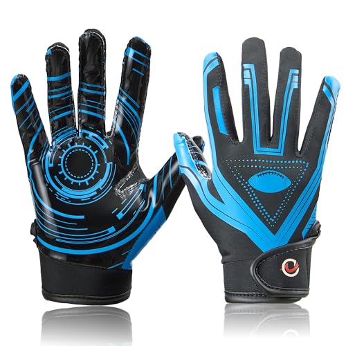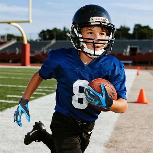 NOVAXUS Youth Football Receiver Gloves,Sticky Silicone Kids Football Goves,Great Gift for Boys/Girls,CA Black/Blue XS/S