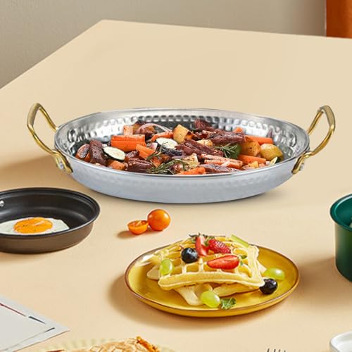 - Quality Material: Built with quality stainless steel, the pan performs well in optimal heat conduction, ensuring fast and uniform heating must-have for exquisite gourmet dishes, Practical Design: Perfectly fits large cuts and whole fish, with a juice-catching rim that improves fine dining presentation, in a stylish oval shape, ideal for creating impressive pan recipes, Wide Application: Crafted to improve festive and formal dining occasions, this pan delivers outstanding presentation quality for s and seafood, blending seamlessly into home kitchens and restaurant environments, Adaptable Cooking Performance: Engineered for use on induction, gas, and more, this cookware supports all-purpose cooking flexibility with added safety for microwave and ceramic appliances, Effortless to Clean: Combining a deformation-resistant frame with a seamless design, this pan ensures hygienic cooking and compact stacking, while its dishwasher-friendly feature simplifies routine maintenance after every use