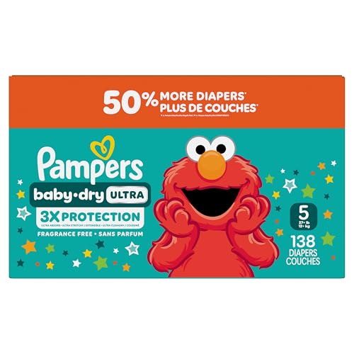 Pampers Baby Dry Ultra Diapers, Size 5 (20-37 lbs), 138 Count, Absorbent Disposable Diapers
