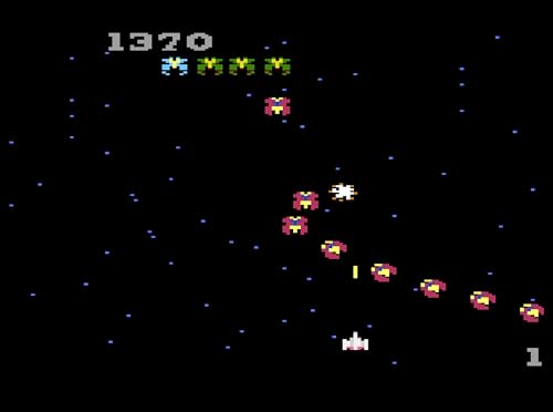 - One of the Most Popular Games Ever: Galaga ranked as a top-10 performer in arcades in the 1980s and still making top 100 lists 40 years later., Fast-paced Arcade Shooter: Defeat mesmerizing patterns of swooping and swirling aliens., Beware The Tractor Beam! Flagships have the ability to trap your ship in their tractor beam. Free your captured ship, then you can battle with two ships side-by-side., Original 7800 Launch Titles: Did you know? In 1986 DIG DUG, GALAGA, and XEVIOUS were all official launch titles for the Atari 7800 home console., Atari Plus Platform: All Atari+ Platform games and accessories are backward and forward compatible. Consoles, accessories, and games work together and are also compatible with most original accessories and cartridges.
