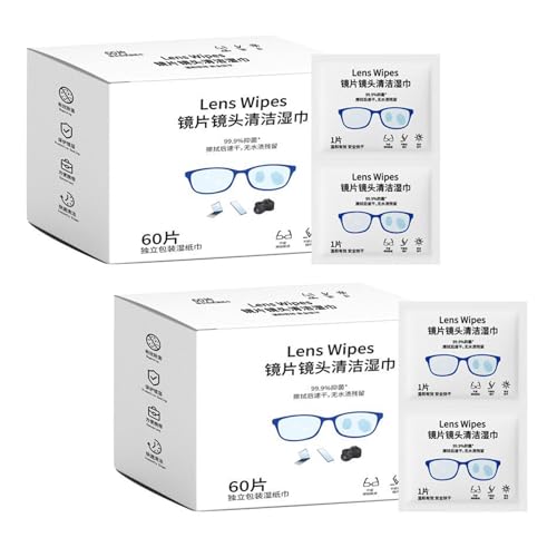 Lens Wipes for Eyeglasses - 120 Individual Wrapped Eye Glasses Cleaning Wipes, Glasees Cleaner for Eyelasses Sunglasses Camera Lenses Phone and Computer Screen