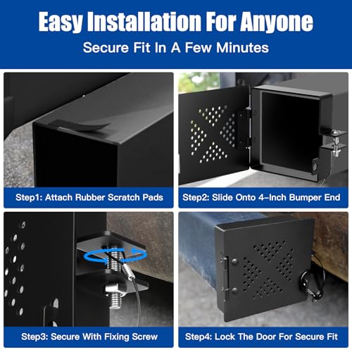 - Secure & Reliable Storage- Keeps sewer hoses and other essentials safely inside your RV bumper end cap, preventing unexpected loss during travel., Heavy-Duty Aluminum Build- Made from high-quality aluminum, this bumper cap is weatherproof, rust-resistant, and built to last, providing long-term outdoor protection for your storage tube and sewer hose., Stronger Than Plastic- Say goodbye to brittle plastic caps that break easily. Upgrade to a sturdy, secure aluminum replacement part, designed for durability and reliability in all conditions., Smaller Holes for No-Insect Ventilation- Designed with small ventilation holes that promote airflow to reduce moisture and odors while keeping insects out of your camper bumper storage tube., Easy to Install- Simply slide it on, tighten the fixing screw, and lock it in place for a secure fit in minutes. Works seamlessly as a replacement accessory part for 4-inch square bumper end caps. Each set includes 2× durable aluminum end caps, 4× rubber buffer pads.