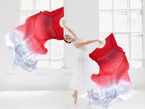 Hitopin 1 Pair Belly Dance Silk Fans, Chinese Dancing Fan Veil, 180cm Length Dancing Fans, Props Silk-Fan, Silk Belly Dance Fan Veil, Dancer Practice Long Imitation Dance, Gifts for Dancers