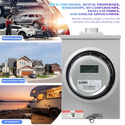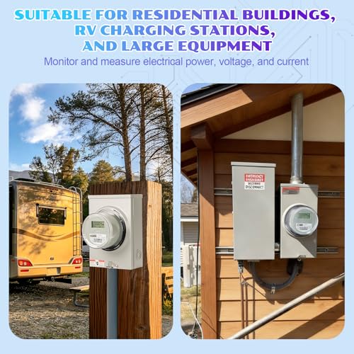 - HIGH DEFINITION DISPLAY AND HIGH PRECISION: The electric meter is equipped with a precision LCD display, which provides clear and intuitive data reading; The measurement accuracy reaches 0.5 level, which can accurately measure electricity consumption and provide reliable data support for electricity consumption monitoring in residential, RV and other scenarios., ENERGY CONSUMPTION MEASUREMENT PERFORMANCE:The meter has TA30 current measurement capability and supports CL200 kWh energy consumption monitoring, fully covering daily electricity metering scenarios., STANDARD DESIGN: The electrical meter adopts a 240V standard working voltage, which complies with ANSI C12.1 industry standards. It meets industry standards in terms of electrical safety and measurement specifications, and is suitable for energy measurement environments in residential and RV scenarios., COMPREHENSIVE PROTECTION FEATURES: Digital electric meters have triple protection capabilities of dust, water, and pressure resistance, which can cope with complex environments such as humidity, high dust, and voltage fluctuations, effectively improving the service life of the meter and ensuring stable operation in various environments, CONVENIENT AND PRACTICAL DESIGN: The electric meter reader adopts a C1S structure, compatible with 4-jaw meter sockets, practical and easy to install. The precision LCD display can also clearly display electricity data, making it convenient for users to view at any time, balancing professionalism and practicality