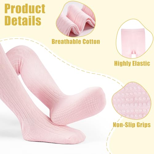 - Gentle & Skin-Friendly - Trusted Quality: ZERULETS baby tights are made from a blend of cotton, nylon, and spandex, offering a soft, breathable, and stretchable fit. Designed for comfort against sensitive skin, these baby girls tights provide gentle care for your little one., Non-Slip Feature: Our non-slip baby girls tights feature grippy dots on the soles to help reduce slips on smooth surfaces, supporting steady steps and safe play., Thoughtful Design: These toddler leggings come with a stretchy waistband for ease of movement and comfort without tightness. Reinforced toe construction ensures long-lasting use, while the classic cable knit design pairs easily with various outfits—such as Mary Janes, jeans, or dresses—for a sweet look., Versatile for Every Occasion: With medium thickness, these baby leggings are suitable for year-round use. These baby tights are ideal for daily wear with skirts, festive events like Christmas and Halloween, or as an extra layer under pants in colder weather, offering both warmth and comfort. They also make a wonderful gift for baby girls., Sizing Guide: Our toddler leggings are available in 4 sizes to fit ages 6 months to 6 years. For the best fit, please measure your baby’s height and weight before ordering and refer to the size chart. If you have any questions about our baby girls tights, feel free to reach out—we’re here to help.