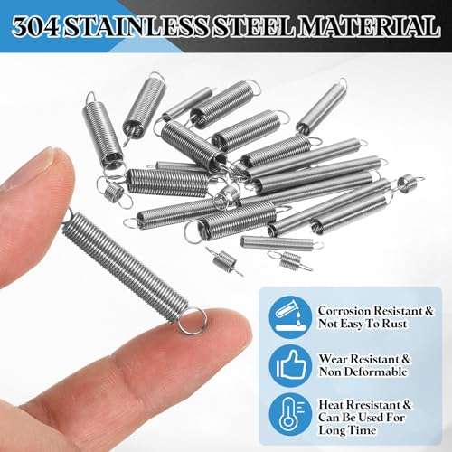 - Color: Silver; Material: 304 Stainless Steel; Wire Diameter: 0.5 mm / 0.02 inch; Outer Diameter: 5 mm / 0.2 inch(OD); Free Length: 60 mm / 2.4 inch; Packing List: 10pcs x Extension Spring., FEATURES: The double hook extension spring is made of 304 stainless steel material, which has excellent corrosion resistance and is not easily rusted. It is also wear-resistant, heat-resistant, and non-deformable, allowing for long-term use. In addition, the spring has excellent elasticity, which allows it to control the movement of the machine, reduce shock and vibration, and measure force, among other applications., APPLICATION: Tension spring can be used in many occasions, such as production and assembly, experiment, research and development, maintenance, home repair, etc. Widely use for furniture, appliances, work, gate, screen doors and repair projects., INSTRUCTION: The extended spring design with double hook, which can be better fixed on the mechanical equipment to ensure the stable operation of the equipment., NOTE: Please wear work gloves to protect your hands when replacing the spring.