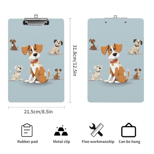- High Quality Material: Our clipboard clamp is made of acrylic material, which is very lightweight and durable. The clipboard with durable rounded corners edges and strong load-bearing capacity, which is not easy to break. Even if it is always held in hand, there will be no burden., Smarter Organization: 12.5in x 8.5in/31.8cm x 21.5cm. Securely holds odd-sized items like envelopes, magazines, or craft supplies. Eco-friendly BPA-free material wipes clean in seconds – ideal for hospitals, construction sites & classrooms., 2-in-1 Space Revolution: Integrated stainless steel hanging hole mounts instantly on walls, lockers, or workshop panels. Saves 70% desk space while keeping critical files visible at eye-level!, Practical Design: The Dog clip board has a flat metal clip to hold the paper, can hold 80-100 sheets of a4 letter size paper, and the curved design makes it easy to grip and extract paper., Widely Used: This beautiful clipboard features double-sided printing and is a favorite among nurses, business professionals, teachers, and lawyers. You can give it to friends, colleagues, and family as a Christmas, birthday, or new year's gift.