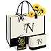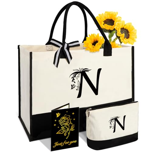 Personalized Gifts for Women - Initial Canvas Tote Bag & Makeup Bag, Custom Bags for Beach, Christmas, Wedding, Birthday, Holiday, Monogram Birthday Gifts for Women, Mom, Wife, Teacher, Friend - N