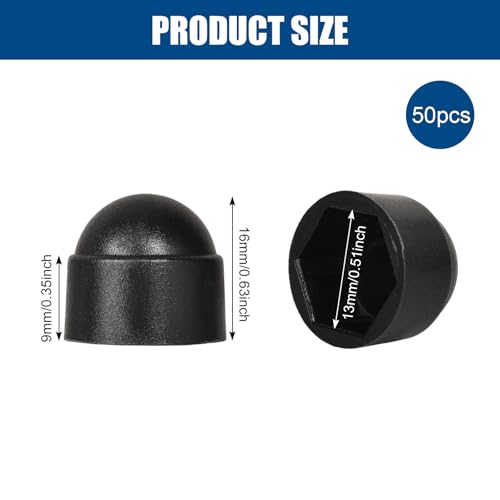 Dokpav 50 PCS Hexagonal Nut Protection Covers, M8 x 13 mm Black Dome Plastic Bolt Cap Cover, Anti-Rust Anti-Aging Screw Cap Kit for Hexagon Screws Bolts Protecting Nuts