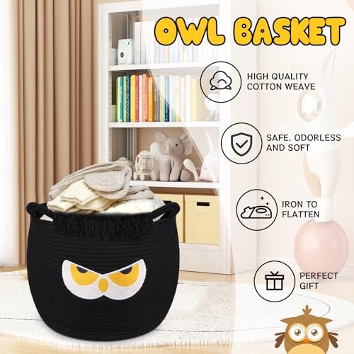 - Soft Cotton Owl Basket: Perfect as a cute laundry basket or blanket storage.Made of soft woven cotton rope, this basket features a cute embroidered owl face and is skin-friendly. Easy to clean, and retains its shape for long-term use in any room., Large Round Storage Design:With a 16(L)×12(W) IN, this spacious round basket is perfect for storing blankets, clothes, toys, or laundry. Its size helps keep your nursery, bedroom, or living area neat and organized., Cute Owl Ear Handles:Designed with charming embroidered owl details and soft standing ears as handles, this basket is both decorative and practical. The handles make it easy to carry from room to room while adding playful character., Multi-Use Home Organizer:Ideal as a gift, nursery basket, or home decor piece, this owl basket neatly stores baby essentials, toys and daily items. It helps simplify organization while adding a cozy, stylish touch to your space., Foldable & Easy Storage:When not in use, the basket folds flat for compact storage. If creases appear, simply smooth by hand or fill with towels or blankets to help it regain its shape—ready whenever you need it. .