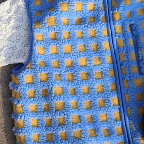 Womens Checkered Sherpa Vest Sleeveless Fall Winter Fleece Jacket High Neck Zip Up Plaid Gilet with Chest Pocket
