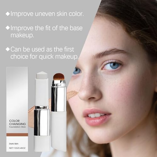 - Color-Adapting Coverage: This innovative balm-to-cream foundation adjusts to your natural skin tone, starting off white and blending into a smooth, radiant finish. Perfect for a flawless base every day., Skin-Loving Hydration: This formula delivers up to 50 hours of moisture while maintaining a fresh, non-greasy feel., Built-in Precision Brush: Features a detachable brush with 32,000 ultra-fine bristles for even blending. Easily buffs product into fine lines and contours, giving your skin a seamless, airbrushed look., Multi-Benefit Makeup Stick: Blurs fine lines, uneven texture, and dull spots with one swipe. Delivers medium to full buildable coverage and is suitable for all skin types, including sensitive skin., Effortless Daily Use: Simply twist out 1cm, swipe on skin, and blend with the attached brush. Great for touch-ups on the go.