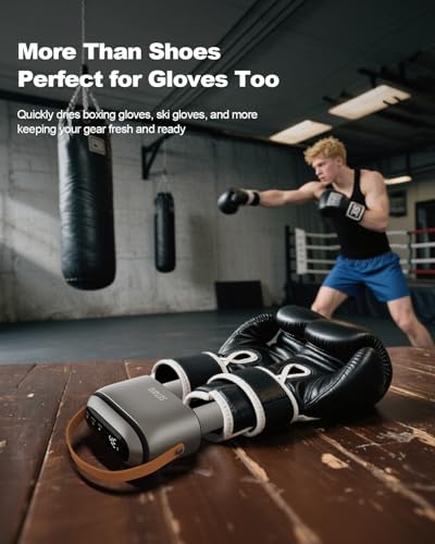- Fast Dual-Air Drying – This powerful boot dryer uses dual air ducts to quickly remove moisture from shoes, boots, and gloves, reducing drying time compared to traditional shoe dryers., Smart LED Touch Panel – Intuitive controls make this shoe dryer easy to operate; adjust heat levels, set timers with one tap., 3 Heat Levels (45°C–65°C) – Gentle warmth for sneakers, strong heat for work boots; versatile as both a shoe dryer for sneakers and a boot dryer for work boots., 1–9 Hour Timer with Auto Shut-Off – Choose the exact drying time you need, whether for a quick refresh or thorough drying—perfect for portable boot dryer users., Extendable 30cm Hoses – Flexible design adapts to all footwear and gear, turning one device into a multi-use shoe warmer, boot warmer, and shoes dryer., 95W Rapid Drying Power – High-efficiency motor makes this shoes dryer effective even for heavy-duty boots and sports gear., Portable & Easy to Store – Compact design folds away neatly; the ultimate portable boot dryer for home, gym, or travel., For Active Lifestyles – Whether you’re a runner, gym enthusiast, or outdoor worker, this shoe dryer and boot warmer keeps your footwear fresh, dry, and ready for daily performance.