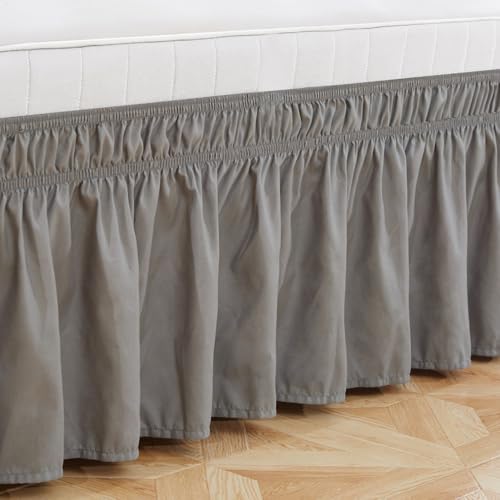 Rofawee Bed Skirts,Wrap Around Bed Skirts with Adjustable Belts for Twin Beds 15 Inches Drop, Elastic Ruffles, Easy Fit Wrinkle& Fade Silky Luxurious Fabric