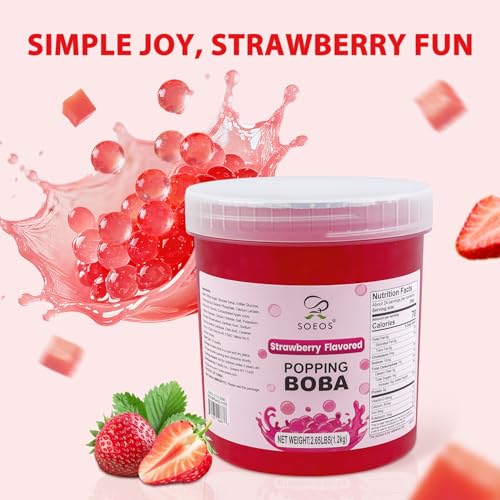 Soeos Strawberry Popping Boba, 1.2kg (2.6 lb), Bursting Strawberry Juice Balls for Bubble Tea, Desserts, and Drinks