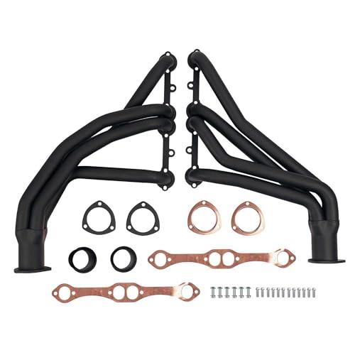 - Protective Black Finish: Aluminized thermal-barrier coating helps resist corrosion and surface oxidation while providing a low-gloss black appearance., Steel Construction: Precision-formed tubing with 1 5/8 inch primaries and 2.5 inch collectors built for dependable strength under heat cycles., CNC Flanges and Welds: 3/8 inch laser-cut head flanges flattened for consistent sealing; TIG-welded joints add durability., Upgraded Gasket Set: Includes copper / fiber multi-layer cylinder-head gaskets and copper collector gaskets for improved sealing and reuse potential., Model Compatibility: Fits 1973-1987 Chevrolet and GMC C10 C20 C30 K10 K20 K30 R10 R20 R30 V10 V20 V30 C1500 K1500 C2500 K2500 C3500 K3500 Blazer Jimmy Suburban Small Block V8 engines.