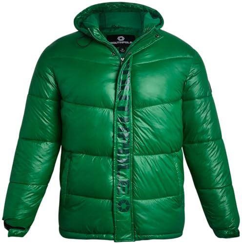 Southpole Mens Puffer Jacket - Lightweight Packable Hooded Puffer Jackets Puffy Winter Coats for Men Snow Ski Hiking (S-XL), Green, Large