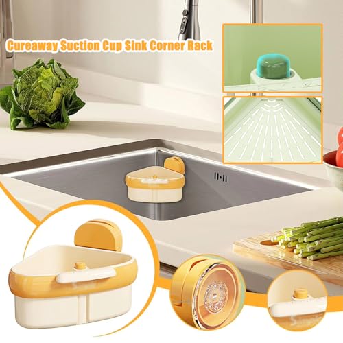- 💦【Upgraded Suction Cup Design】This upgraded sink corner strainer comes with powerful suction cups. It can be firmly attached to the sink walls or corners without using any tools. Even with wet hands or splashing water, it stays securely in place, ensuring efficient collection of food waste., 💦【One-Press Auto Dumping】It features a one-press automatic dumping mechanism. With just a simple press, food waste can be easily emptied into the trash can, eliminating the need to touch the messy scraps. The smooth operation enables quick and hygienic cleanup, saving time during post-meal tidying., 💦【Multi-Func: Strainer & Sponge Holder】Beyond catching food waste, the corner sink rack also serves as a sponge holder beside the faucet. This helps organize the sink area and makes full use of counter space, offering a 2-in-1 solution for a neater kitchen., 💦【Corner Sink Waste Catcher】Designed specifically for sink corners, this removable corner sink trash catcher efficiently traps leftover food, peels, and debris, preventing drain blockages. Its compact size doesn't interfere with the normal use of the sink, making it an ideal choice for small or busy kitchens., 💦【Resists Odors & Easy Clean】Made from durable, water-resistant materials, the suction cup rack for kitchen resists odors. Its removable design allows for easy rinsing under running water, and the smooth surface prevents food from building up. You can maintain a clean and fresh sink area with minimal effort.