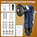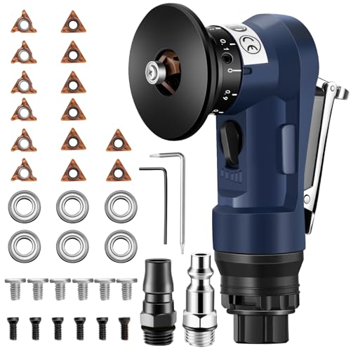 - 【Upgraded Mini Pneumatic Chamfering Tool with Premium Matte Finish】Boasts a premium fine matte black surface for a sleek, professional look that stays clean and scratch-resistant. Includes 8 C blades & 6 R blades (2 C blades pre-installed) with 6 durable bearings and complete screw kit for precise 45° right-angle and round-edge chamfering. Perfect for metal, wood, PVC, and acrylic sheets. Ideal air chamfering tool for deburring, beveling, and edge finishing., 【Adjustable Speed & Depth】Powered by air compressor, this pneumatic chamfer tool features 5-speed air intake and adjustable depth from 0.1–0.9mm, enabling precise edge deburring and beveling on inner and outer surfaces of sheet materials., 【Complete Accessories for Easy Maintenance】Includes all 8 C & 6 R blades, 6 bearings and full blade screw set for easy replacement and long-lasting use. This mini pneumatic chamfering machine comes with everything needed to save time and maintenance costs., 【Anti-blockage & Safety Design with Durable Matte Housing】Equipped with 1/4" metal filtered air inlet, safety switch, and alloy steel baffle to prevent debris entry. Its rugged premium matte surface resists daily wear, oil stains, and scratches, ensuring smooth operation, stable performance, and reliable air beveling for long-term use., 【Widely Used 】The handheld chamfering tool can quick smoothly cutting for straight,round,curve and irregular edge outer or inner hole.Not suitable for stones, glass, titanium alloy or hardened materials.