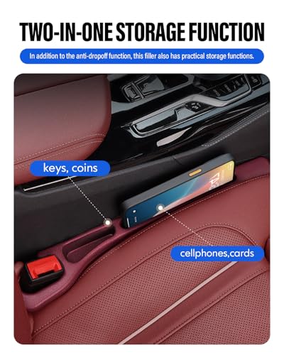 - Block the gap, Enjoy your Drive: FOLUMAD car gap filler is a reliable anti-drop protection device that can prevent items from falling into the gap of the seat, keeping the car clean and easy to access at any time., 2 in 1 storage function: In addition to the anti-drop function, this Car Seat Side Gap Filler also has practical storage functions. Use the storage space to organize small items such as mobile phones, cards, wallets, etc., High-quality Material: Made of soft polyurethane, this seat gap fillers are not only tough and durable but also scratch-resistant, waterproof and easy to clean. without worrying about damaging the car interior., Wide Compatibility, Easy Installation: the car seat filler is compatible with most cars with seat gaps less than 3cm; easy to install and won't interfere with seatbelts, ensuring a clutter-free driving experience., Car Essentials Interior Accessories: Package comes with 2 pcs, 1 for the driver side and 1 for the passenger side. this between seat gap filler organizer is also perfect choice for birthdays, valentines, festivals, or any special occasion.