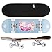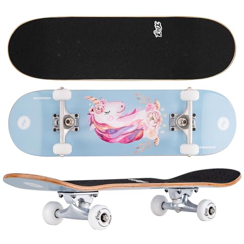 KMX Complete 27.5" x 7.75" Skateboard for Beginners, 7-Layer Canadian Maple Double Kick Concave Deck| Aluminum Alloy Trucks | 27.5 Inch Skate Board for Girls, Kids, Teens(Cute Pink Unicorn)