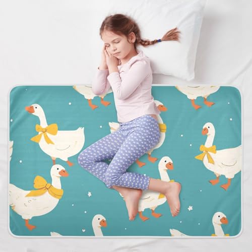 52"L x 34"W Simple Cute Goose Cartoon Extra Large Resuable Toddler Mattress Pads Water Resistant Potty Training Sheets Cover Cute Cool Toddler Bedding Products for Kids Adults Pets