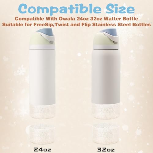 - Precision Fit for Owala: Expertly crafted for a secure and seamless fit on Owala 24oz & 32oz FreeSip stainless steel water bottles. No slipping or falling off., Maximum Impact Protection: The durable silicone base absorbs shocks from drops and bumps, protecting your bottle from dents, scratches, and damage. Reduces noise on hard surfaces., High-Quality & Safe Material: Made from flexible, food-grade, BPA-free silicone. It's odorless, easy to clean, and safe for the whole family., Customizable Style: Choose from a range of glitter colors to mix, match, and personalize your water bottle. Add a pop of unique flair to your everyday carry., Ideal Gift for Anyone: A practical and thoughtful present for birthdays, holidays, and special occasions. The perfect gift for moms, friends, students, and professionals.