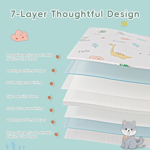 - Safe & Reliable: Our baby pack and play mattress foam is certified by CERTIPUR-US. The crib mattress complies with ASTM standards. It contains no glass fiber, no chemical flame retardants, phthalates or lead, and has no pungent smell., Standard Size: Our standard-sized pack and play mattress measures 38 "× 26", which can closely match the corresponding size of the pack and play. We offer two thickness options: 1.5 inches and 3 inches. The unique rounded corner design fits perfectly with the bed without any gaps, providing a comfortable and safe private space for your baby., Waterproof & Removable: The outer layer is covered with soft and breathable hypoallergenic fabric, which is skin-friendly and delicate. The inner layer adopts a high-density waterproof structure, which can effectively resist liquid penetration. The specially designed detachable outer cover is machine washable, making daily cleaning and maintenance worry-free and effortless., Premium Foam: To carefully safeguard your baby's spinal health, our pack n play mattresses foam combines high-density support with high resilience and softness. This not only provides balanced support for the baby's spine in the rapid development stage, effectively preventing collapse, but also wraps the baby's body in all directions with just the right softness., Easy To Carry: Designed specifically for travel! The tri-fold structure combined with a portable bag enables you to store it easily and carry it around. Whether visiting relatives or traveling, it can instantly build a comfortable and safe space for your baby, making the comfort of home follow you like a shadow.