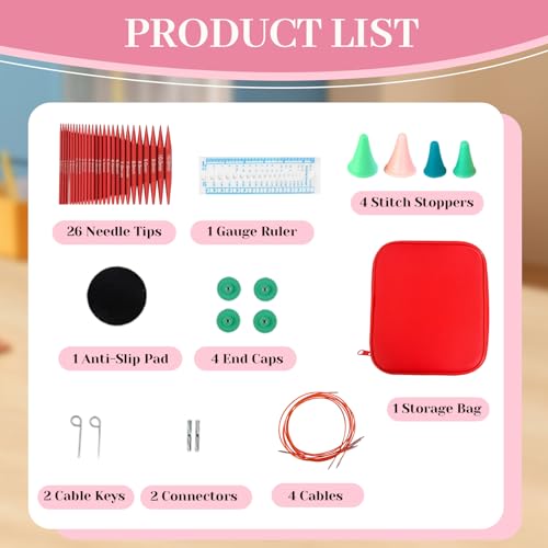 Benustra 4-In Circular Knitting Needles,13 Pair(26 Pcs) 3mm-10mm Interchangeable Knitting Needles Set with 4 Cords,Accessories & Bag,Aluminum Round Knitting Needles Set for DIY Knitting Lovers(Red)