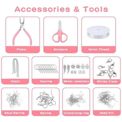 - 🎨【Complete Essential Tool Set】: Bracelet making kit includes a 5-meter elastic cord, scissors, and pliers to fulfill all basic needs for crafting bracelets, necklaces, and other jewelry, making it a one-stop solution for DIY enthusiasts., 🛡️【Vibrant, Non-Toxic Materials】: Jewelry making supplies features polymer wooden beads that are non-toxic, durable, waterproof, and fade-resistant, available in a wide range of colors to inspire colorful and safe DIY creations for all-day wear, even in water environments like beaches or pools., 🎁【Gifts for Young Girls】: Rainbow Loom Keychain - Friendship bracelet craft kit designed as a fashionable and fun present that fosters creativity, self-expression, and sharing, making it excellent for girls' parties, skill-building activities, and joyful bonding experiences. ideal gift for daughters, sisters, friends, or loved ones on occasions like birthdays, Valentine's Day, or Christmas., 🗃️【Efficient Three-Layer Storage Box】: Incorporates a practical storage system that keeps all components organized and easily accessible, ensuring hassle-free crafting for both children and girls., 💡【Fostering Creativity and Skill Development】: Through engaging DIY projects, the bracelet teen girl gifts cultivates fine motor skills, imagination, and parent-child bonding, serving as an educational yet entertaining tool that enhances creativity in both children and enthusiasts.