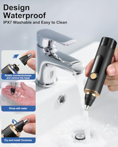 - ❤【2 Interchangeable Heads & Smart LED Display】This 2026 professional cordlessnose hair trimmer for women precisely handles nose, ear, eyebrow, and facial hair. It comes with two interchangeable heads, making it perfect for hygienic sharing with a partner or family member. The upgraded LED display shows your exact battery level, With up to 90 days of use on a single charge (based on 2 minutes of daily use) so you’re never surprised by a dead battery. Never get caught with a dead battery right before your date or trip—stay, ❤【Powerful Copper Core Motor & Painless Trimmer】This stainless steel trimmer delivers 13,000 RPM Powered by an upgraded copper-core motor for fast yet gentle grooming. The 360° dual-edge blades rotate smoothly to capture and cut hair with precision—no pulling, no irritation. Its nose-hugging head is designed for comfort and safety, making every trim quick, painless, and worry-free., ❤【USB Rechargeable& Low Noise Nose Trimmer Women】Nose and ear trimmers for men comes with a USB Type-C cable and built-in battery for easy charging anywhere. Say goodbye to disposable batteries. With noise levels below 50 dB, you can groom discreetly at the office, in the car, or while traveling. Stay tidy on the go—quietly and effortlessly., ❤【IPX7 Waterproof & Easy Cleaning】Designed for total convenience, this facial hair remover for women is fully IPX7 waterproof. Simply rinse it under running water after use—the removable head makes cleaning quick and hygienic. The practical design includes a protective dust cap to keep the blades safe., ❤【Lifetime for Worry-Free & Premium Gift】We stand behind the quality of our trimmer. If you're not completely satisfied, contact us directly for a no-hassle replacement or refund—no questions asked. It's not just a practical grooming tool, but also a thoughtful gift that brings everyday convenience. Shop with 100% confidence.