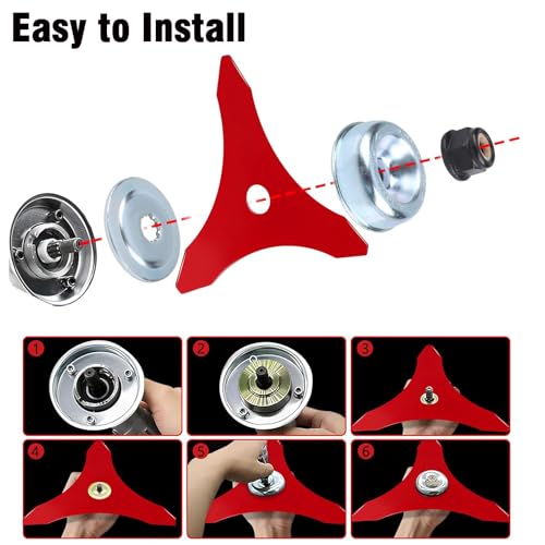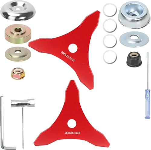 - 【High-Quality and Durable Carbon Steel Blades 】 The weed blade is made of durable carbon steel for superior strength and long-lasting sharpness—cuts through thick weeds, brush, and small saplings effortlessly, 【Universal Compatibility】This 10" x3T Brush Cutter Blade Weed Wacker Replacement Blade Includes 2 adapter kits (for Stihl & straight-shaft trimmers) + 4 washers—fits 1" (25.4mm) or 20mm arbor models from forS-tihl, forHus-qvarna, forEgo, forOr-egon, and forHi-tachi, 【2-Pack Blades-Double the Cutting Power】 You will get two 10-inch, 3-tooth brush cutter blades—double the cutting power, perfect for heavy-duty landscaping and field clearing, 【Easy to Install】The Brush Cutter Blade Sets Comes with all necessary hardware (thrust washers, rider plates, collar nuts, and a screwdriver)—no special tools needed, installs in minutes, 【Safety & Performance 】Designed for clean, efficient cutting—avoid rocks and hard objects to maintain blade sharpness. Always wear protective gear (goggles, gloves) for safe operation, in addition, Please check your models before buy, make sure the blade fit your model. Working with these blades could be dangerous, please always be sure that the blades are installed securely and used safely