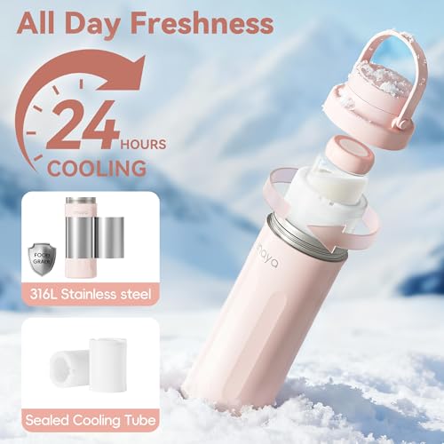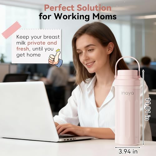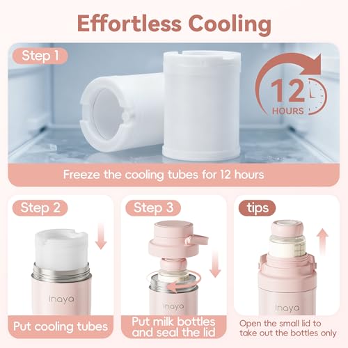 Inaya Portable Breast Milk Cooler Bottle 22oz – Travel Breastmilk Chiller with 24 Hours Cooling, Large Capacity Baby Essentials with 2 Independent Bottles for Breastmilk Storage, Blush Pink