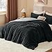 BEDELITE Fleece Queen Comforter Set -Super Soft & Warm Fluffy Black Bedding, Luxury Fuzzy Heavy Bed Set for Winter with 2 Pillow Cases
