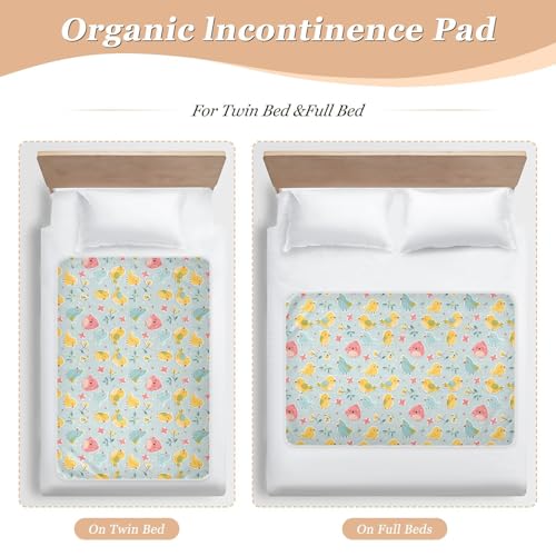 Stickers Style Cartoon Childish Bird Leaf Blue Peach Extra Large Resuable Potty Training Pad Highly Absorbent Flat Crib Pads Anti-Lip Cradle Mattress for Baby Boys Girls , 52" L x 34" W