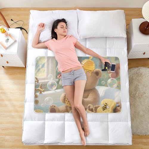 Cartoon Bear Bathtub Extra Large Resuable Baby Bed Pad Highly Absorbent Mattress Pad Machine Washable Cradle Mattress for Kids Adults Pets , 52" L x 34" W
