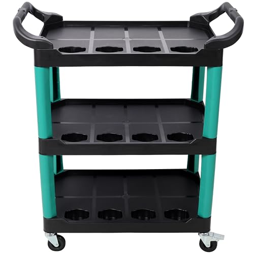 - ORGANIZED STORAGE: Professional 3 tier car detailing cart with shelves, panel, bucket, and hooks keeps all detailing tools, spray bottles, and accessories organized and within reach., HEAVY DUTY PERFORMANCE: Built with high-grade plastic shelves offering 300 lbs capacity, this auto detailing cart ensures durability, lightweight handling, and long-lasting daily use., MOBILE UTILITY DESIGN: Equipped with 4 wheels including 2 lockable casters, plus ergonomic side handles, making this tool cart on wheels easy to maneuver in garages or workshops., MULTI-PURPOSE APPLICATIONS: Ideal as a car wash cart, cleaning cart, or tool cart for auto shops, repair facilities, and home garages, ensuring efficiency and versatile functionality., EASY TO ASSEMBLE & USE: Designed with user convenience in mind, this auto detailing cart with wheels allows quick installation, smooth movement, and simple operation for all users.