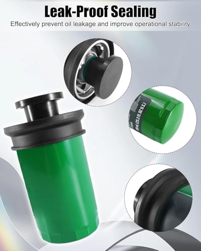 - Precision Fit: Oil filter fit for John Deere E/ D/ S/ X Series tractors, Z365R, ZTrak, Moverk, replace AUC12916, AUC13705, AUC13706, AUC13707, Double-Protection Sealing and Leak-Proofing: Filter utilizes high-quality rubber seals and a reinforced metal housing to effectively prevent oil leaks, improve operational stability, and ensure long-term, safe engine operation, Efficient Filtration and Long-Lasting Durability: Filter's built-in high-density filter media effectively traps tiny impurities, extending oil life, reducing oil changes, and lowering maintenance costs, Clean Packaging Technology: Filter utilizes an advanced dry packaging process to prevent oil leaks during transportation, ensuring it arrives intact, Ready-to-Install: Oil filter's pre-coated, lubricated seal design allows for tool-free installation and quick, hand-tightening